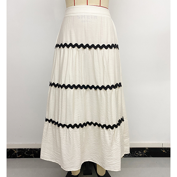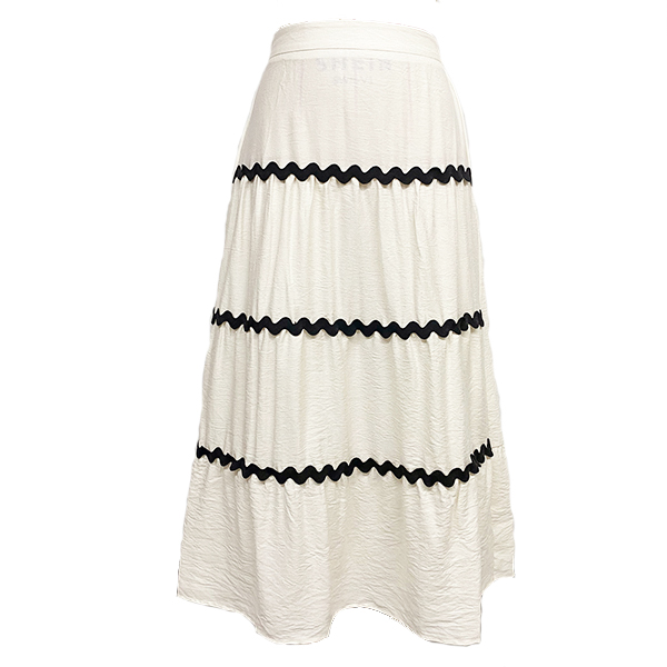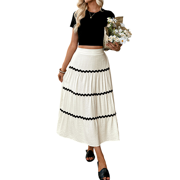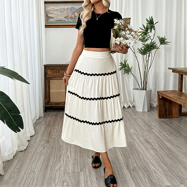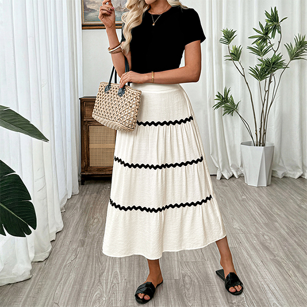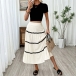 Trendigt högmidjat midikjol med kontrastfärgade sömmar och paneler