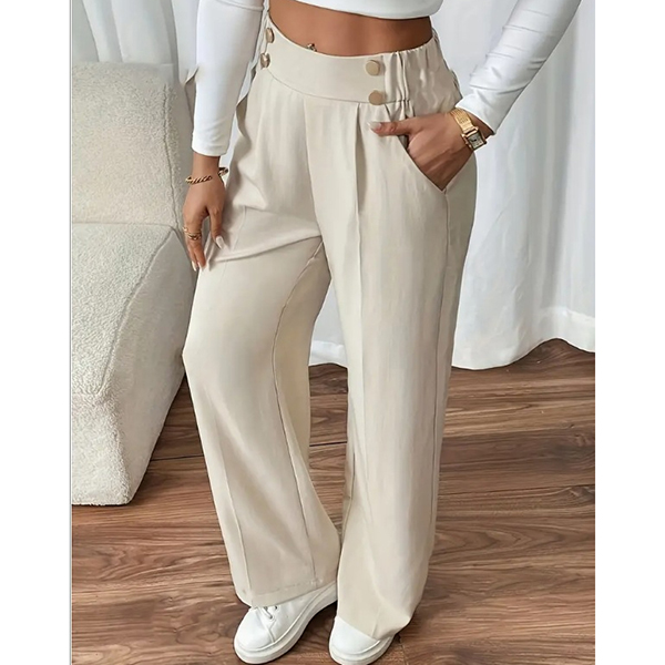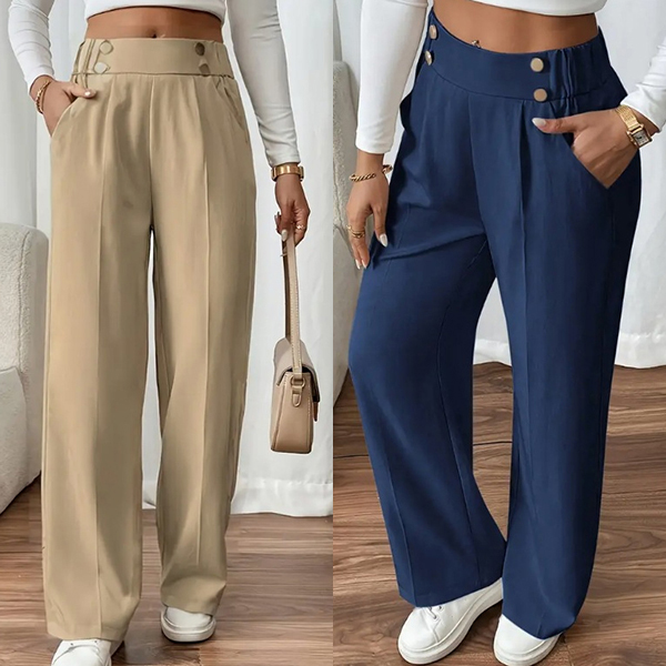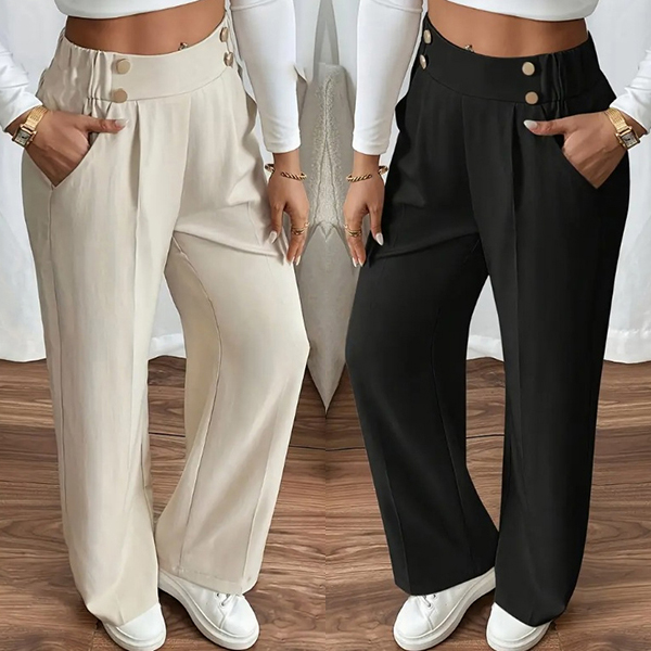 Dambyxor med hög midja, rak passform och dubbelknäppning