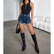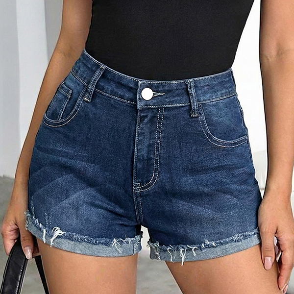 Dessa eleganta shorts har en modern, smickrande hög midja och en autentisk vintage-denimdesign som ger avslappnad sofistikering. Den vikta, fransade fållen tillför en ledig charm och en avslappnad finish, medan denimkonstruktionen ger bekväm hållbarhet och mångsidig styling. Perfekt för vardagsbruk.