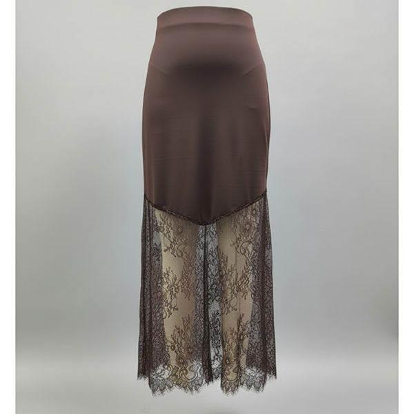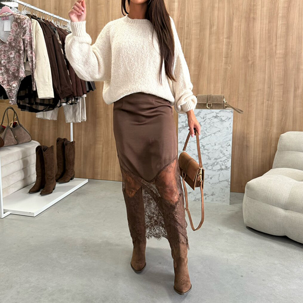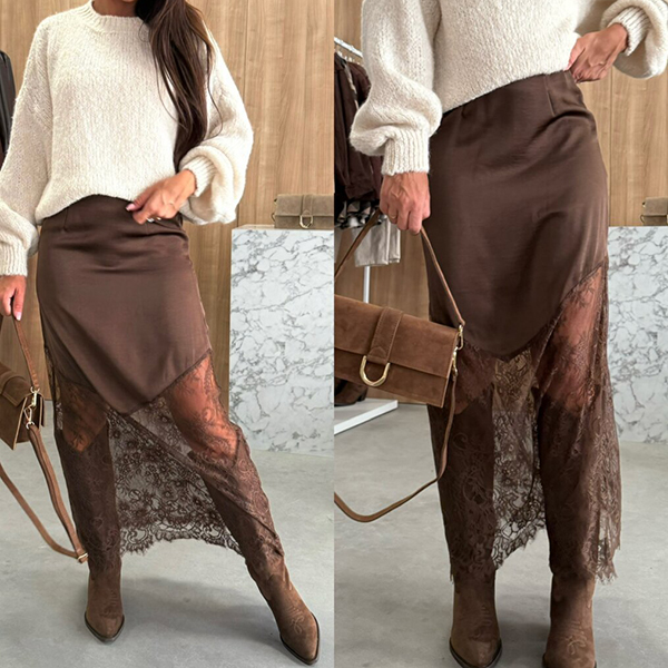 Högmidjad spetskjol med skarvade paneler – trendig och feminin