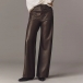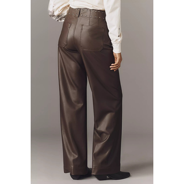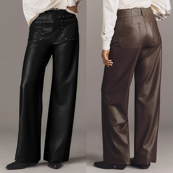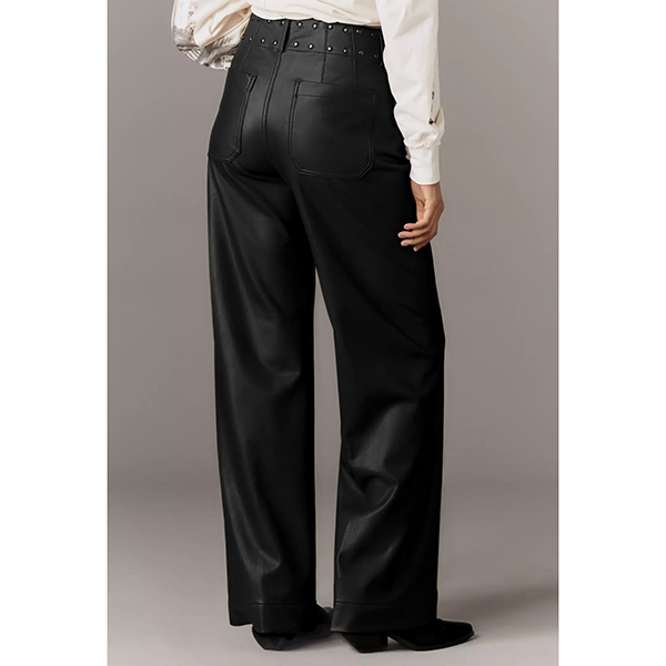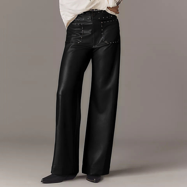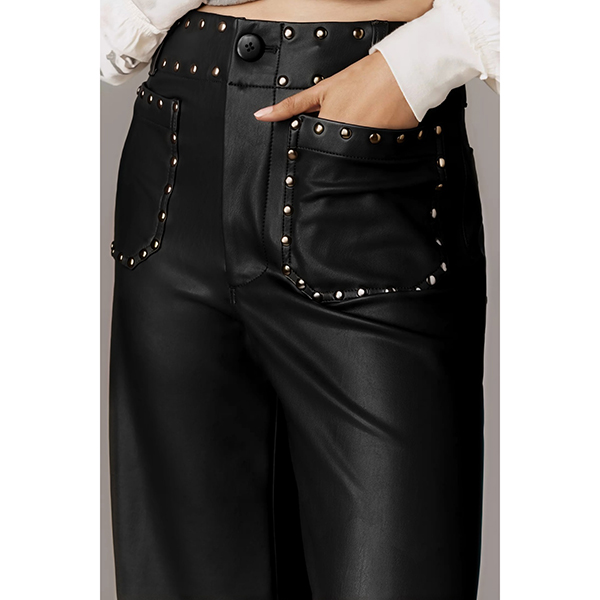 Trendiga högmidjade byxor med nitar och konstläderfickor, rak passform