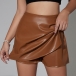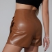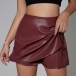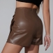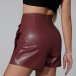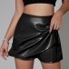 PU-läderbyxor med hög midja – trendiga med rynkade sidoslitsar