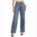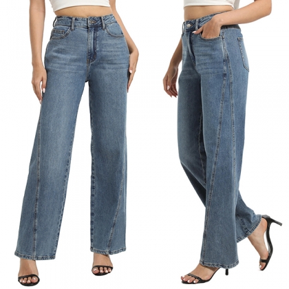 Trendiga raka jeans för dam med hög midja och vintage-tvätt