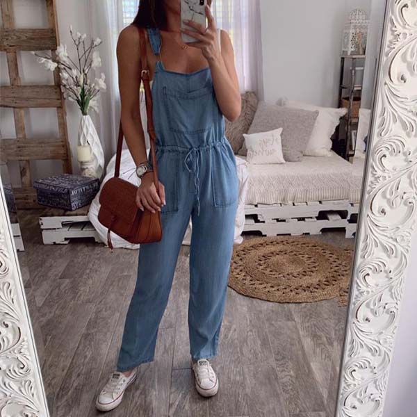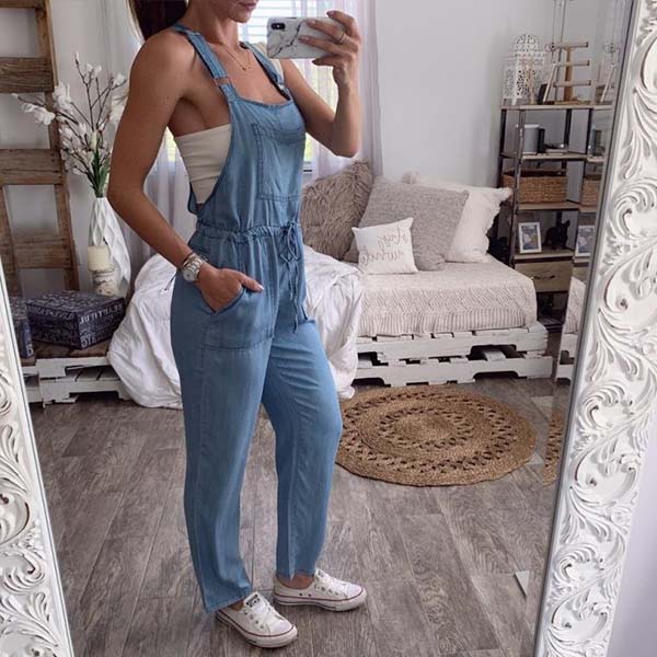 För en snygg, ungdomlig och lekfull stil kan den här jeansoverallen ge dig precis den känslan. Med sin höga midja och rena siluett design visar den upp din smala figur på ett fantastiskt sätt. Det mjuka och andningsbara tyget ger dig dessutom en bekväm dag, oavsett vad du gör. Enkel att matcha med en t-shirt eller skjorta, den här overallen är perfekt för att skapa en fashionabel look för varje dag.