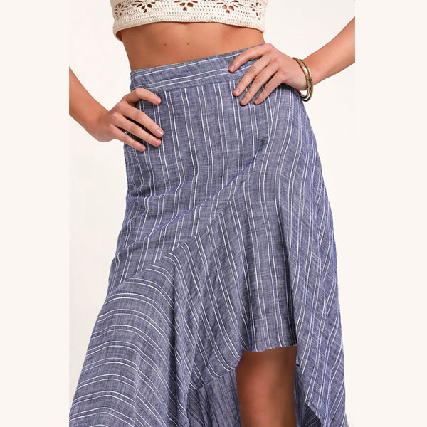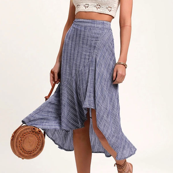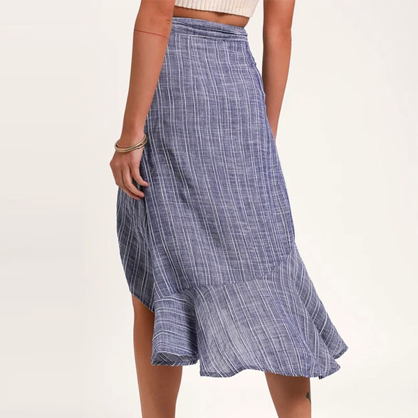 Your wardrobe calls for such a stylish and all-match skirt. The stripe element design makes it look popular and attractive,while the high waist and irregular hem design will further enhance its charm. Simply need to match with your favourite top,then you can have a fashionable look.
