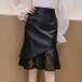 For moments when you're short of time for wardrobe mix and match, settle for an all-match piece such as this skirt! Finished with high waist,lace spliced hem and a fit silhouette,this skirt not only can showcase your slender legs,but also can boost your femininity. You can match it with any top you like!