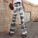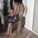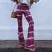 Moderiktiga högmidjade mönstrade utsvängda byxor med breda ben