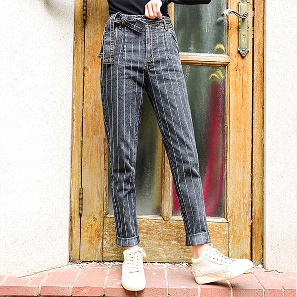 You style can have a boost when you wear this striped pants. Its soft and breathable fabric can give you a comfortable day,while the high waist design will showcase your slender figure. Meanwhile,the waist strap design will further enhance its charm. Like this style? Then buy one!