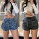Fashion High Waist Side-slit Front-pocket Denim Shorts