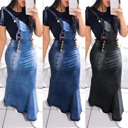 Fashion High Waist Slim Fit Denim Suspender Skirt