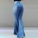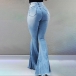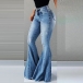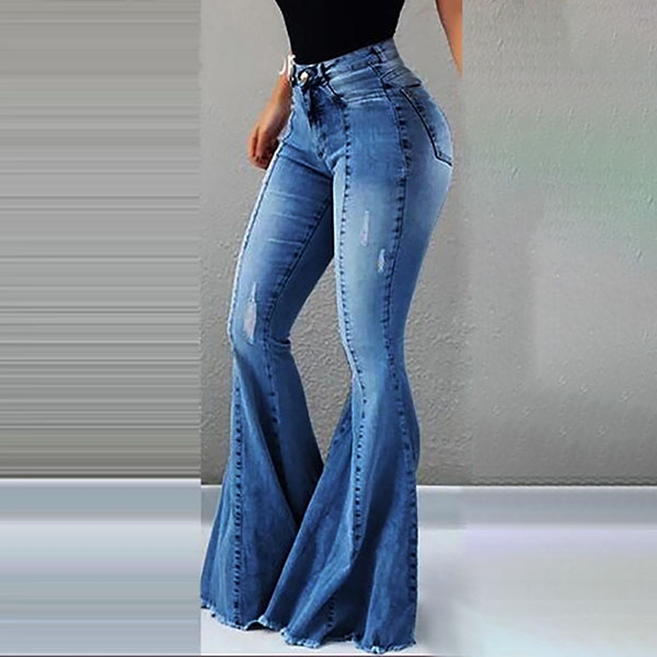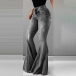 this flared pants. Its high waist and fit silhouette design can showcase your slender figure,while the