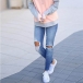 On your lazy days,you can trust in this all-match jeans to keep you comfortable while it maintains your style. The high waist and fit silhouette design will showcase your slender legs,while the hollow out ripped details will make it look more stylish. This cozy,stylish and all-match jeans is yearning for a place in your wardrobe.