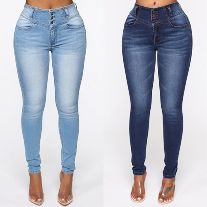 A wardrobe essential - add this jeans to your wardrobe ensemble and you won't be disappointed. The high waist and fit silhouette design can showcase your slender leg. It can hardly go wrong no matter what kind of tops you pair with!
