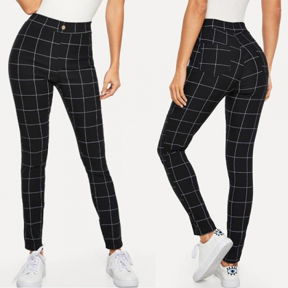 Fashion High Waist Slim Fit Plaid Pants
