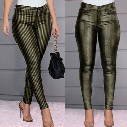 Like stripe element? Then this pants can easily strike your mind! The high waist and fit silhouette design will portray your slender figure,while its soft,breathable fabric can offer you a comfortable day. Try to match with your favourite top to have a fashionable look.