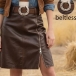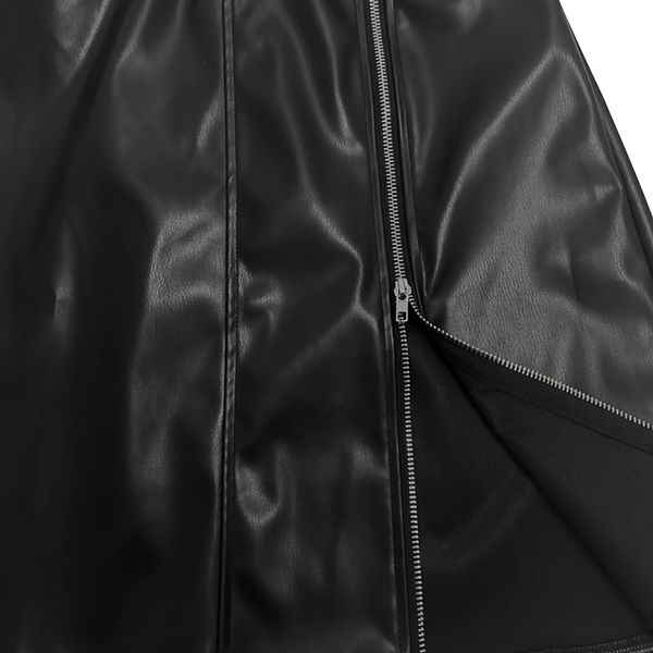 Modern högmidjad kjol i PU-läder – sidodragkedja, slits och resår i midjan (bälte medföljer ej)