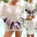 Fashion Hollow Out Colorful Stripe Pattern Knitted Swimming Cover-up Shirt