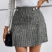 Hundtandsmönstrad minikjol med hög midja och sidoknappar – trendig design