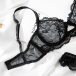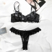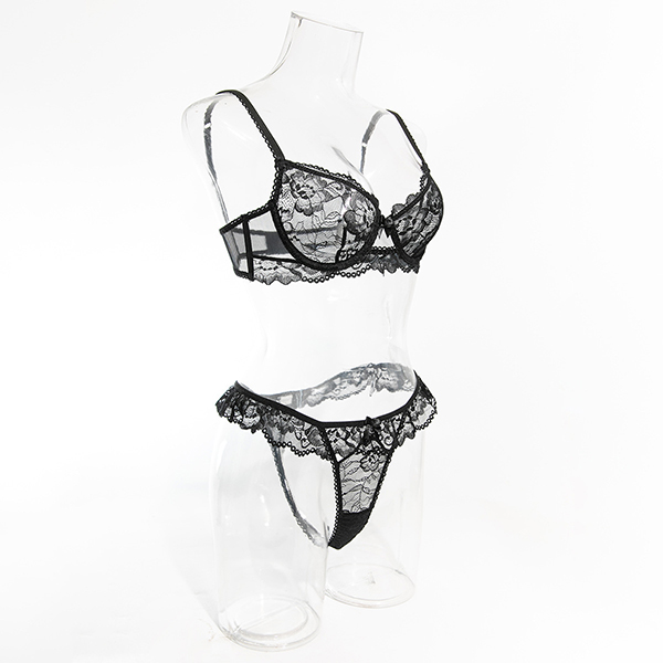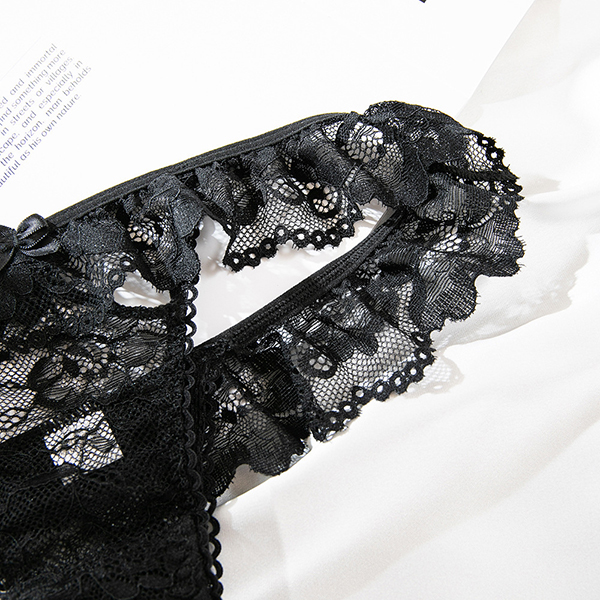 Tvådelat underklädesset – moderiktigt utskuret med rosettknut, volang och spets