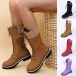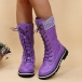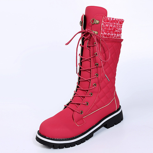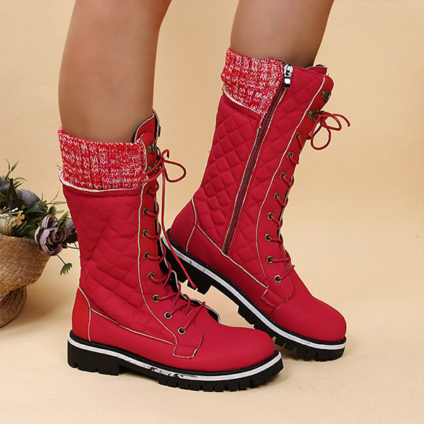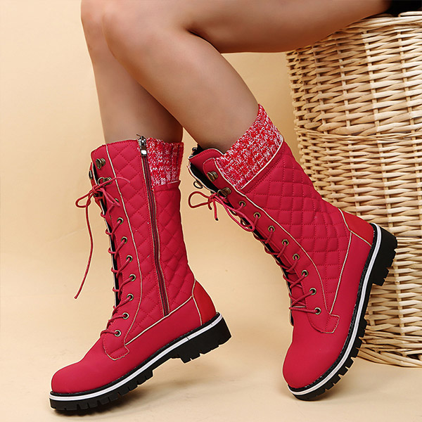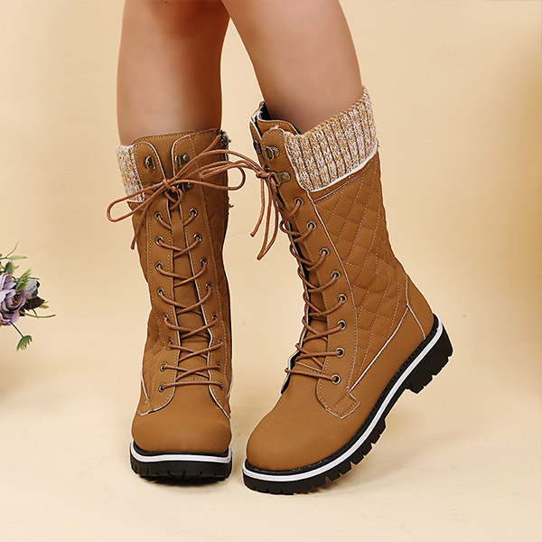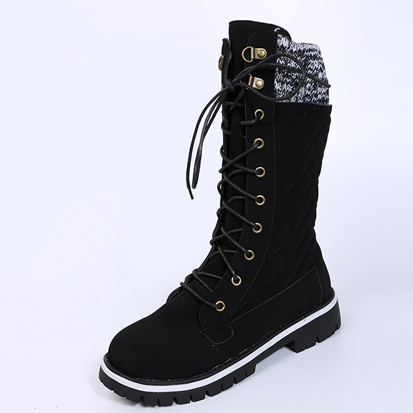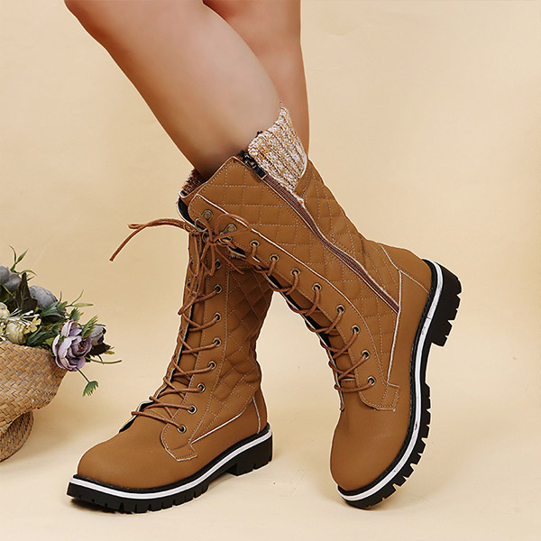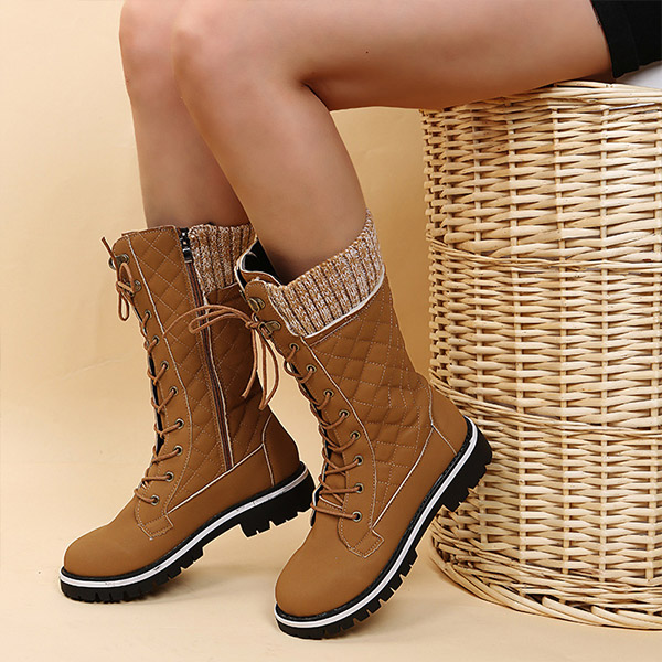 Modestickade snörstövlar med skarvning och dragkedja på sidan