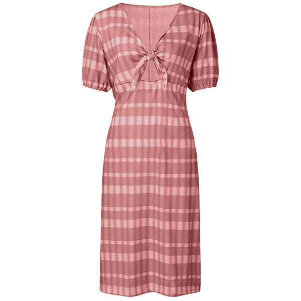 Fashion Knotted V-neck Short Sleeve Striped Maternity Dress