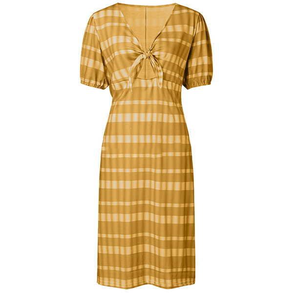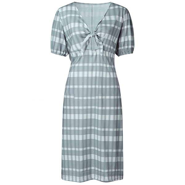 During your pregnant tome,you have no need to worry about what to wear to express your beauty and charm if you have this dress in your team. Designed with striped element,with short sleeve and knotted v-neck design,this dress not only can make you feeling comfy,but also can exude your style and charm.