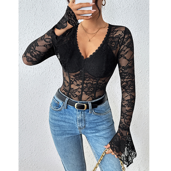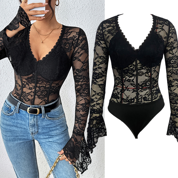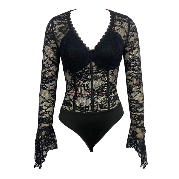 Denna svarta bodysuit har en elegant modedesign med lyxig spetskonstruktion och en strukturerad korsettdesign som skapar en modern, romantisk sofistikering. Kombinera med hög midja för en moderiktig vardagslook!