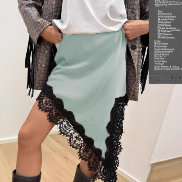 Denna kjol har elegant spets och en konstnärligt oregelbunden fåll som ger en moderiktig, romantisk sofistikering. Perfekt för vardagsbruk.
