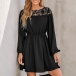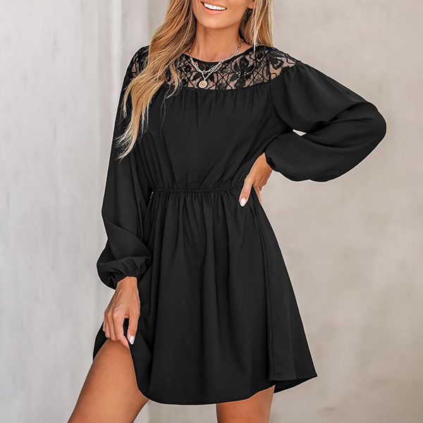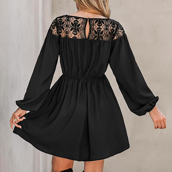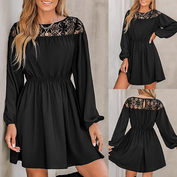 För din afternoon tea-tid eller helg ute med dina vänner kan den här klänningen vara ditt perfekta val. Den är enfärgad med långa ärmar, rund hals och spetsskarvade detaljer. Denna klänning kommer garanterat få dig att se både snygg och vacker ut.
