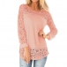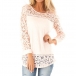 Fashion Lace Spliced Long Sleeve Round Neck Top