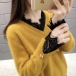 Fashion Lace Spliced Long Sleeve V-neck Knit Top