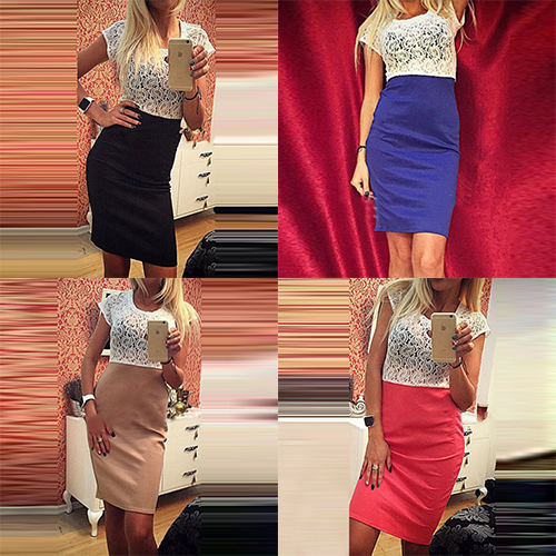 That's why we love this dress. Lace spliced style,with short sleeve,round neck and a fit silhouette,this dress