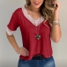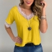 Fashion Lace Spliced Short Sleeve V-neck T-shirt