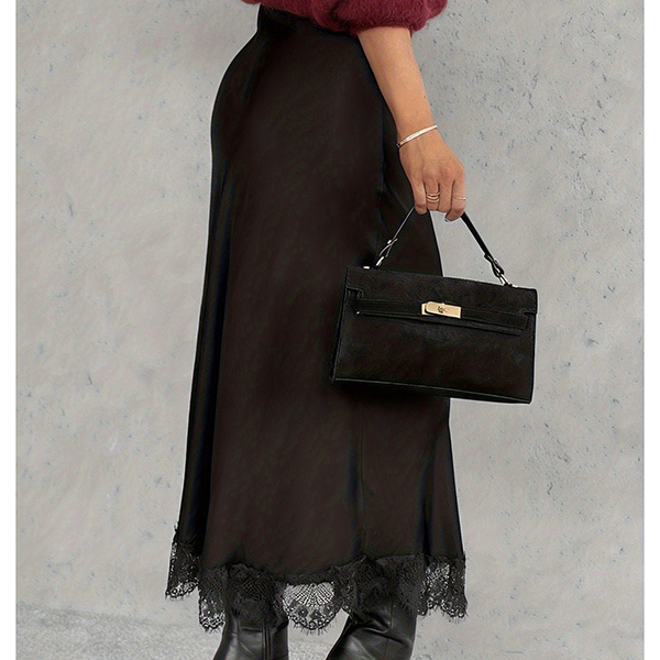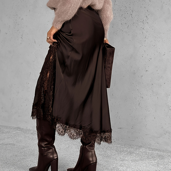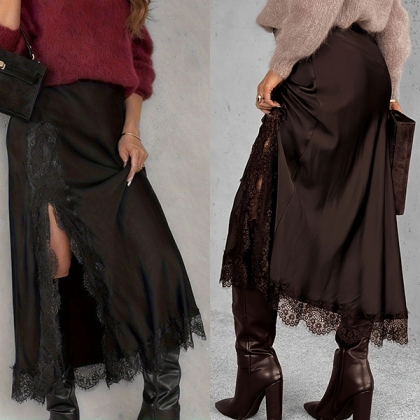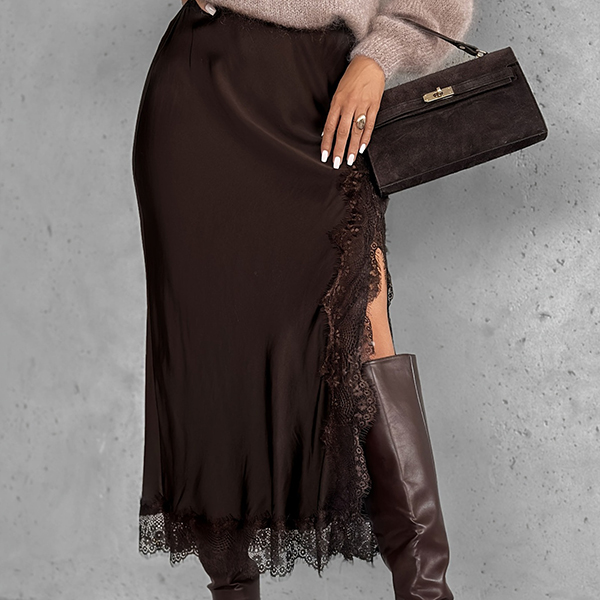 Titta på den här kjolen! Delikata spetssömmar ger lyxig textur och hantverksmässig charm, vilket skapar en vacker visuell dragningskraft. En strategisk sidosprund tillför subtil lockelse och graciösa rörelser, vilket gör att du kan gå med självförtroende och lätthet. Vill du ha en?