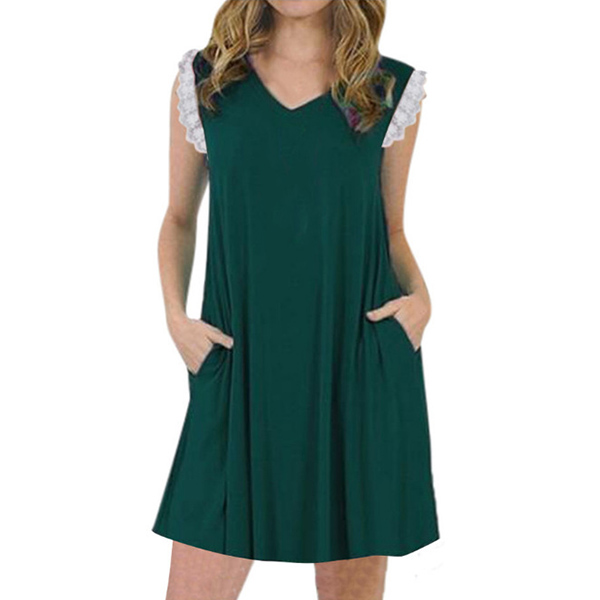 Fashion Lace Spliced Sleeveless V-neck Loose Dress