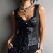 Trendig ärmlös PU-läderväst med spetsinsatser och V-ringad knäppning