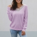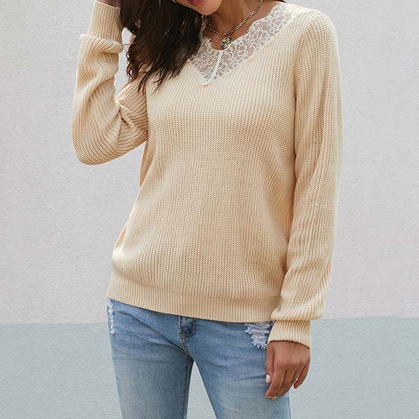 Fashion Lace Spliced V-neck Long Sleeve Solid Color Knit Top