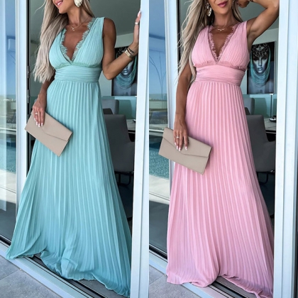 This Maxi Dress is a stunning and sophisticated dress that is perfect for any formal occasion. This dress features a lace-spliced V-neckline that creates a flattering and feminine silhouette. while the pleated maxi design creates a flowy and feminine silhouette that is both comfortable and flattering. Wanna have a try?