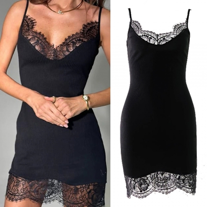 Njut av diskret sensualitet med denna utsökta underklänning som förkroppsligar enkel elegans. Delikata spetsinfällningar ger en romantisk textur och lyxiga detaljer, vilket skapar en vacker kontrast mot det släta tyget. Hoppas du gillar den.
