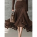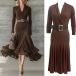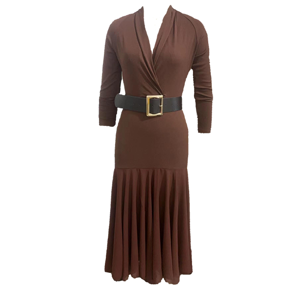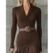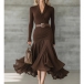 Trendig midiklänning med V-ringning, vida volangärmar och svepande fåll – utan bälte