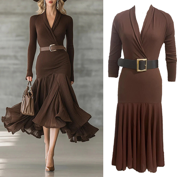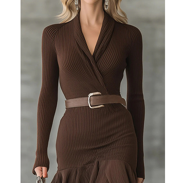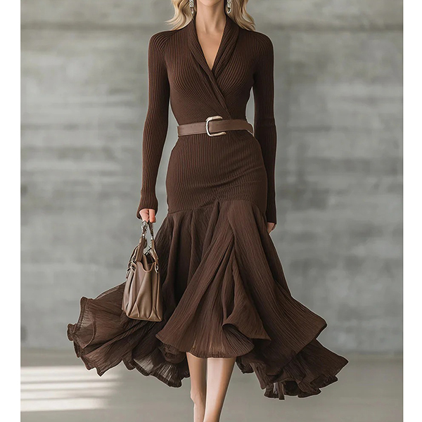 Strukturerad A-linjeformad klänning med djup V-ringning och romantisk volangkant som skapar en modern, elegant och sofistikerad siluett. Tillverkad i lättskött, högkvalitativt material som faller vackert längs kroppen, framhäver midjan och ger en lyxig känsla. Den unika strukturen skiljer sig från vanliga fest- och vardagsklänningar, medan volangdetaljen adderar en feminin och lekfull touch. Perfekt för sommarens fester, vardagsbröllop eller en lyxig cityrunda – uppgradera garderoben med denna tidlösa trendklänning.