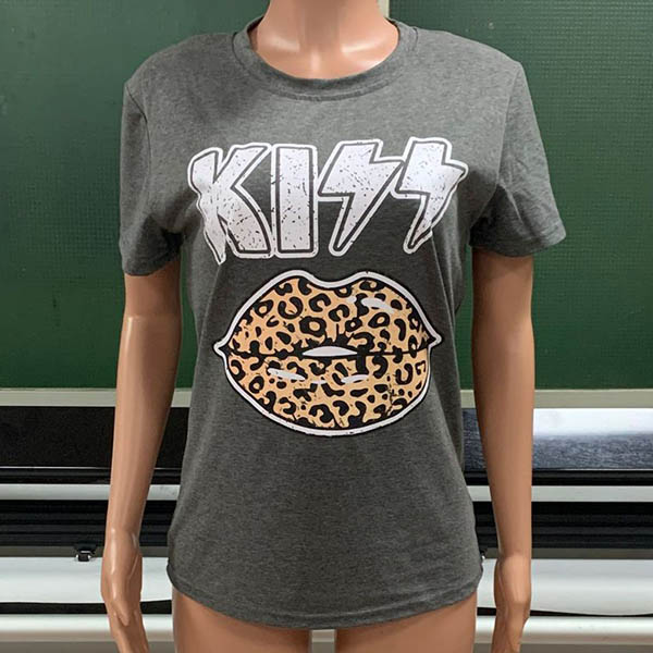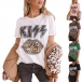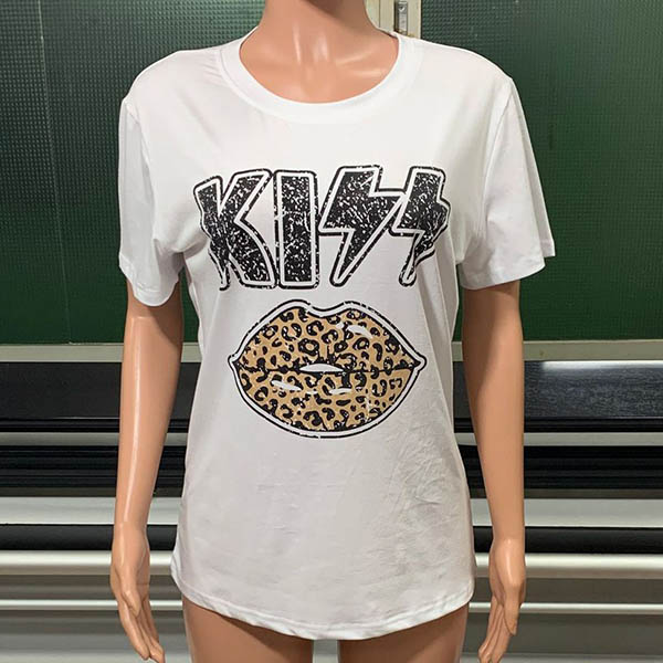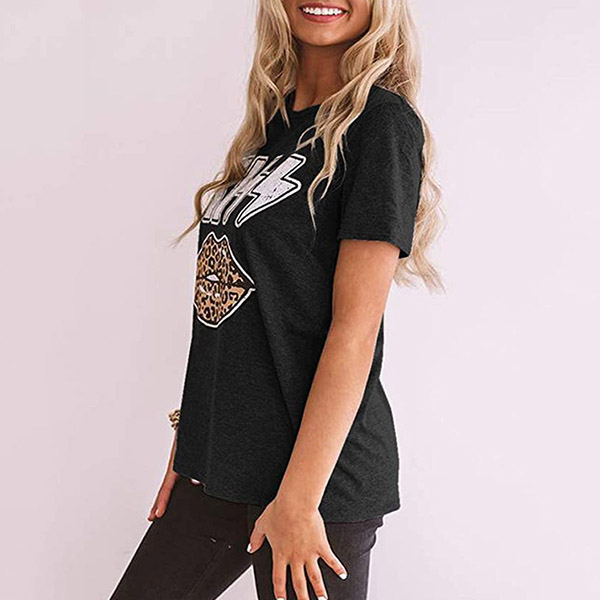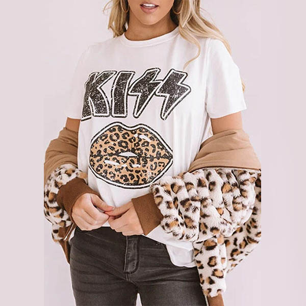 Fashion Leopard Lip Printed Short Sleeve Round Neck T-shirt