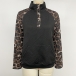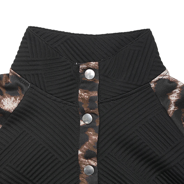 Leopardmönstrad långärmad tröja med V-ringning, knappslå och praktisk kanguruficka