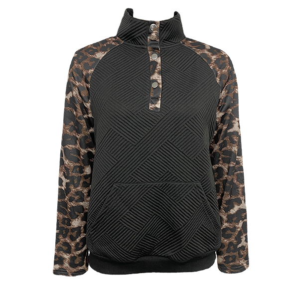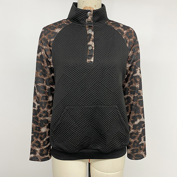 Trendig streetstyle-tröja med djärvt leopardtryck vid halsringningen och långa ärmar som ger en edgy, elegant look och skiljer sig från vanliga toppar. Mjuk, stretchig bomullsblandning garanterar maximal komfort hela dagen, medan kängurufickorna tillför en avslappnad, funktionell känsla. Perfekt för vardags- och festoutfits samt lager-på-lager-styling – ett självklart basplagg i vår- och höstgarderoben.
