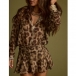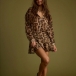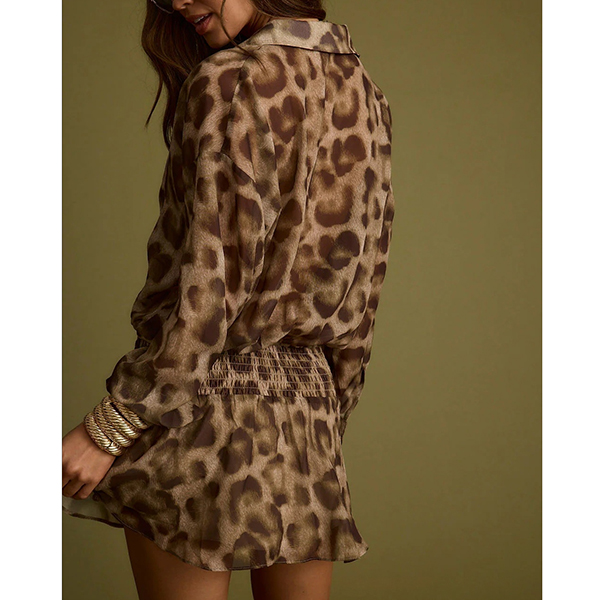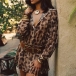 Leopardmönstrad miniklänning med knäppning fram, långärmad och hög midja