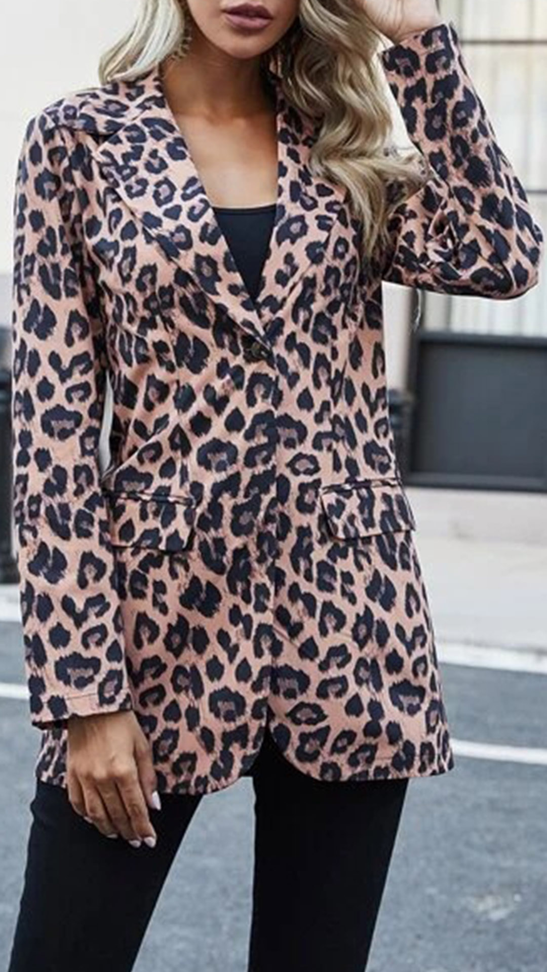 It is a good chance to enrich your simple and dull wardrobe ensemble with this blazer. The leopard printed details can make you look more eye-catching. Finished with long sleeve,notched lapel and a clean silhouette,this blazer knows how to boost your entire charm.
