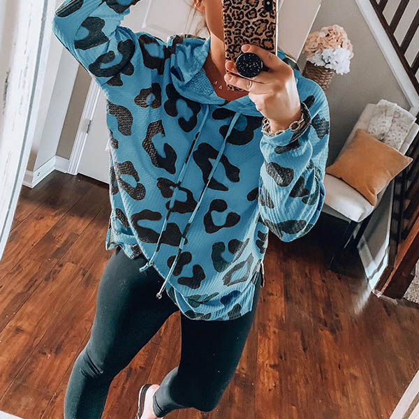 Portray your youthful,playful and energetic side through this sweatshirt! The leopard printed details can offer you a more eye-catching look,while its soft,breathable fabric and loose silhouette design will give you a comfortable day. In these early autumn days,this wonderful piece is a wise choice.