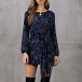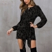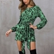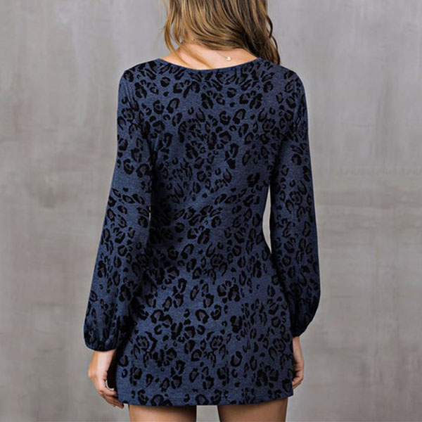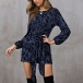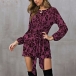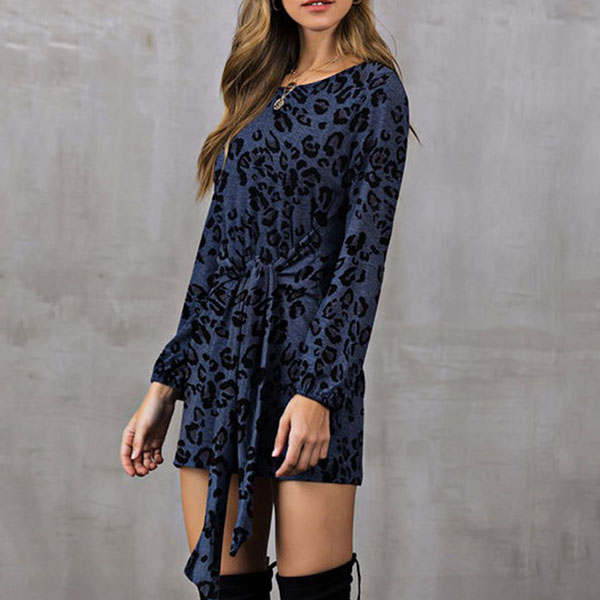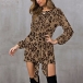 Fashion Leopard Printed Long Sleeve Round Neck Lace-up Dress