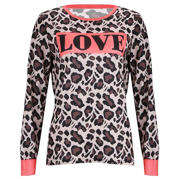 Fashion Leopard Printed Long Sleeve Round Neck Sweatshirt