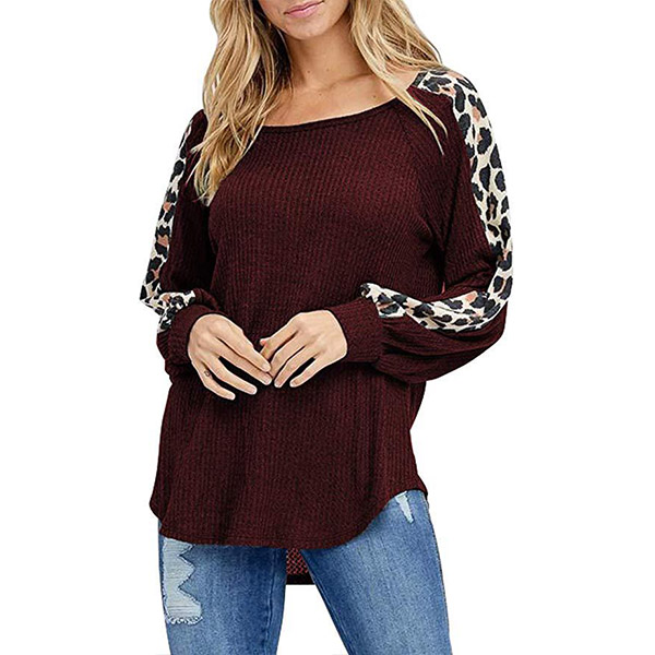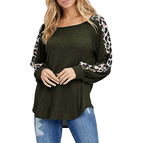 Fashion Leopard Printed Long Sleeve Round Neck T-shirt